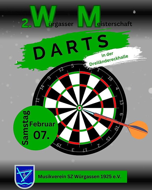 Am Samstag, den 7. Februar 2026 veranstaltet der Musikverein Würgassen in der Dreiländereckhalle die zweite WM - die zweite Würgasser Meisterschaft im Darts.